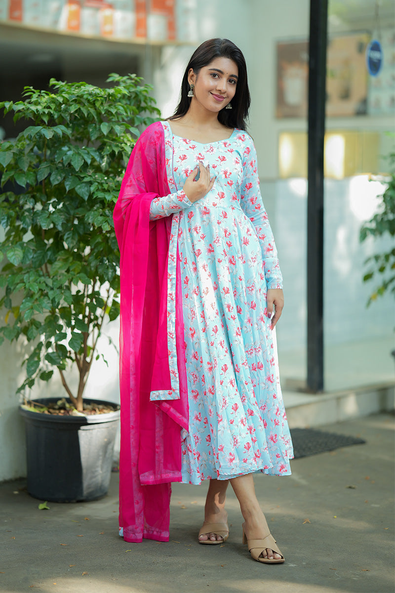 Step into effortless elegance with this breathable Georgette Crepe Anarkali.